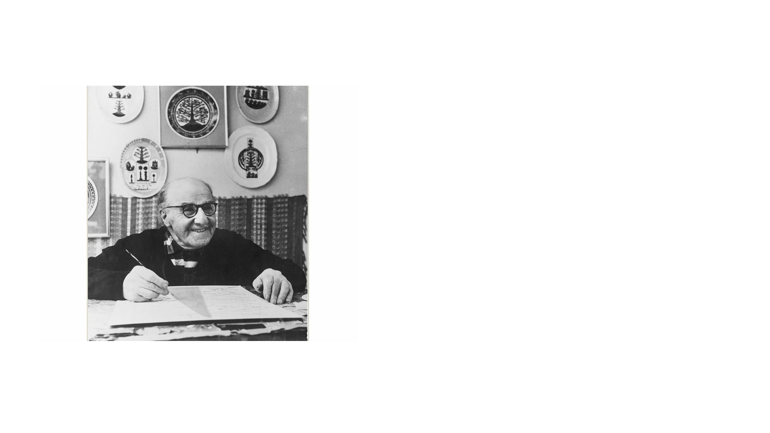 In 1945, Dubuffet travelled to Switzerland with his friend Jean Paulhan and the architect Le Corbusier to learn more about artists marginalised from mainstream culture, including patients in psychiatric care. Dubuffet undertook more than twenty interviews while in Switzerland with publishers, doctors, curators and writers, and this trip formalised the idea of ‘Art Brut’.