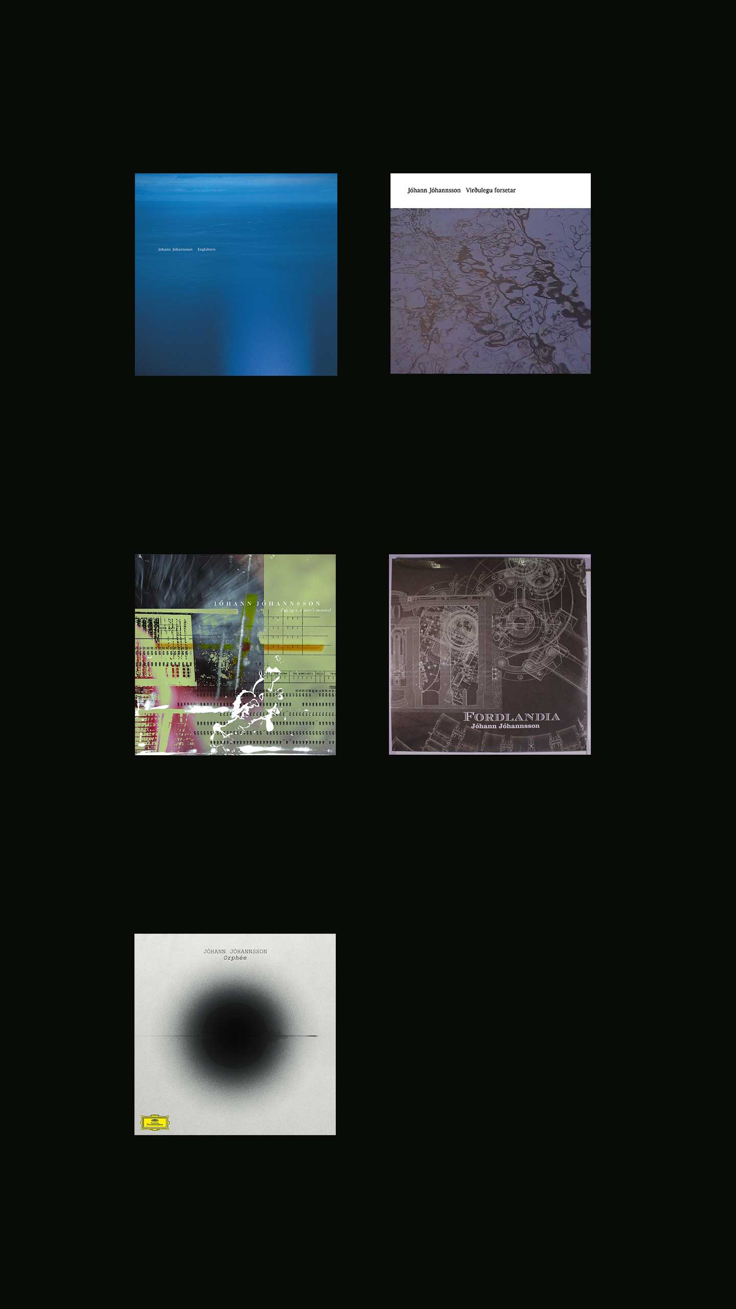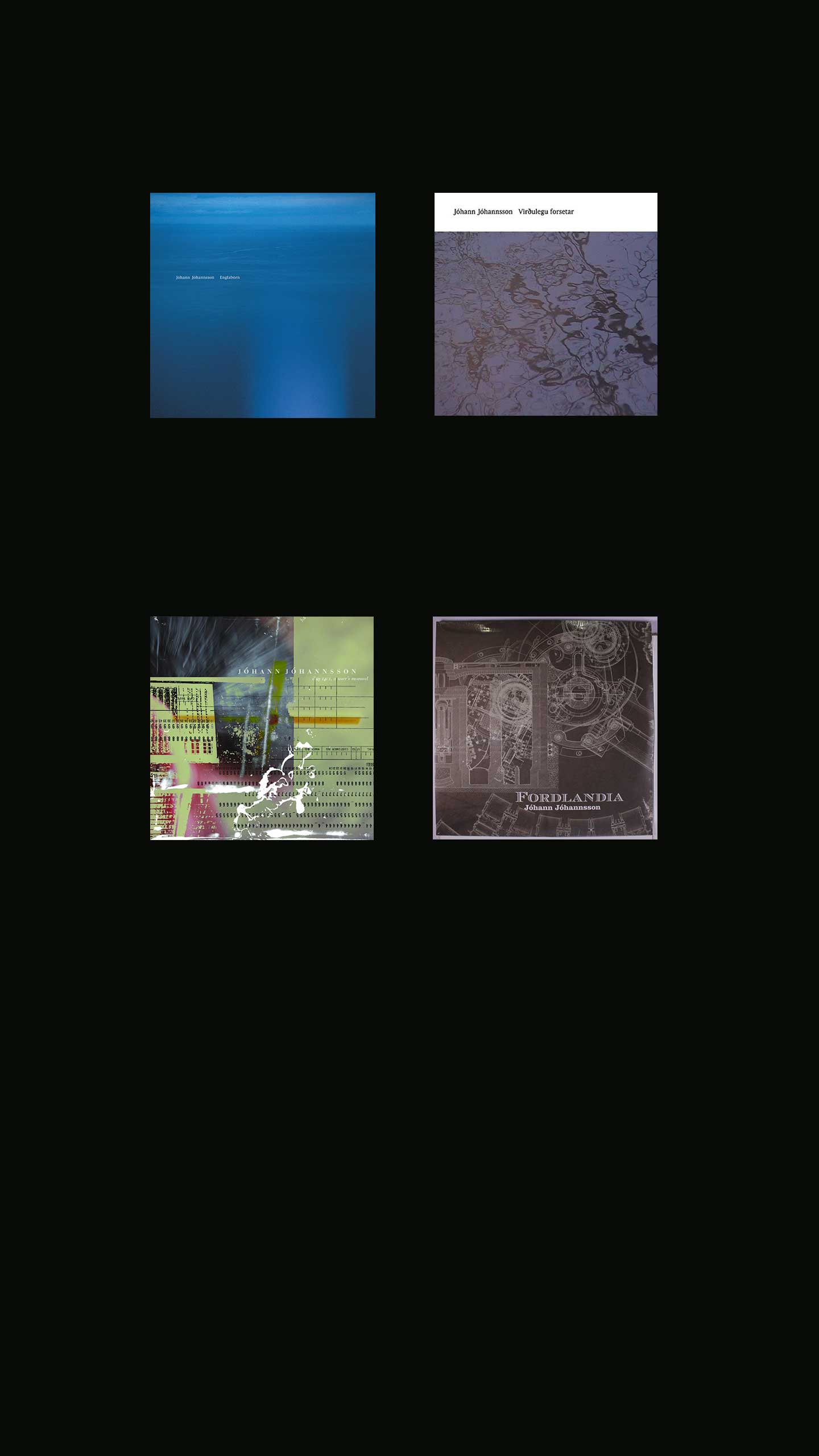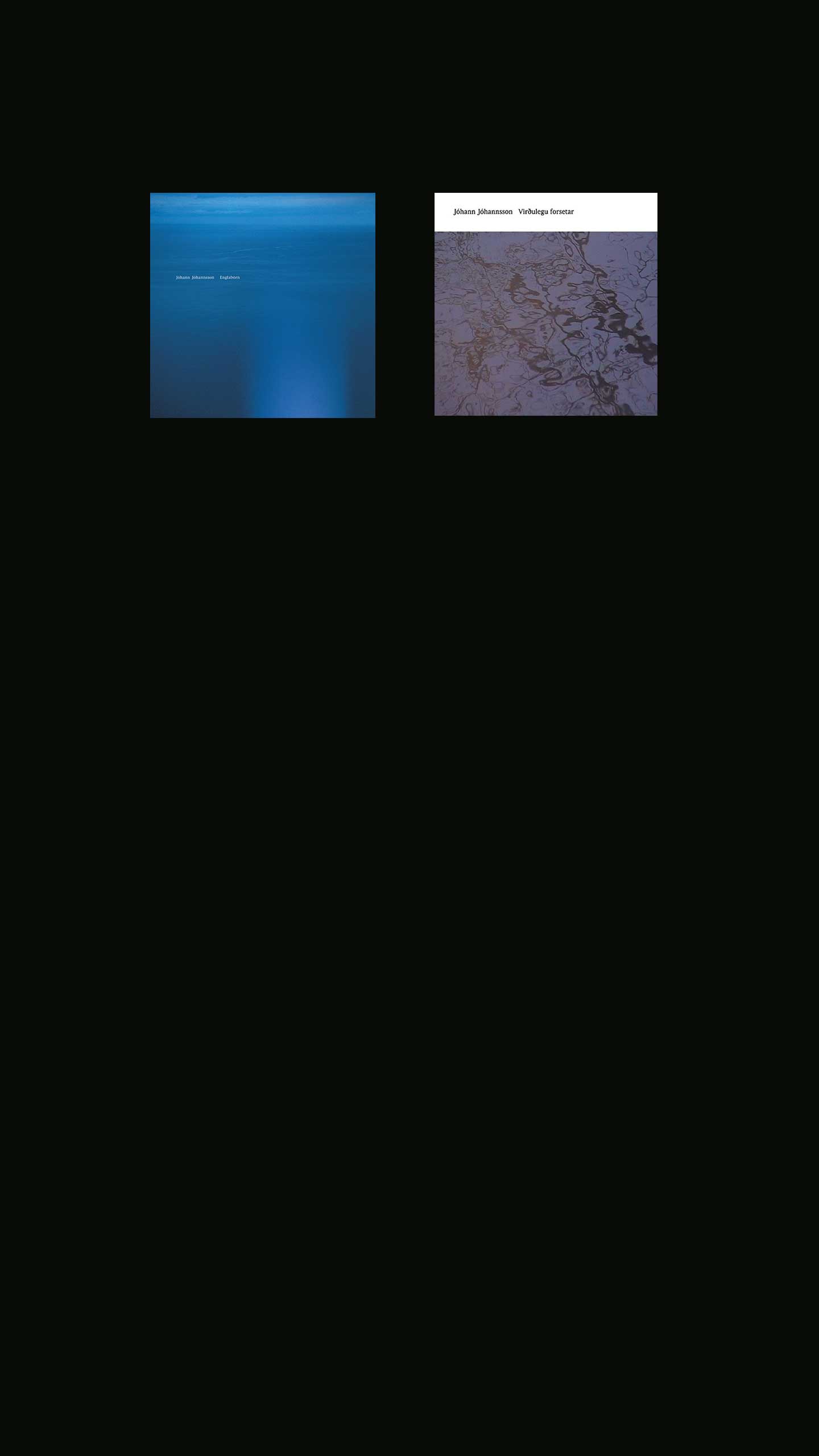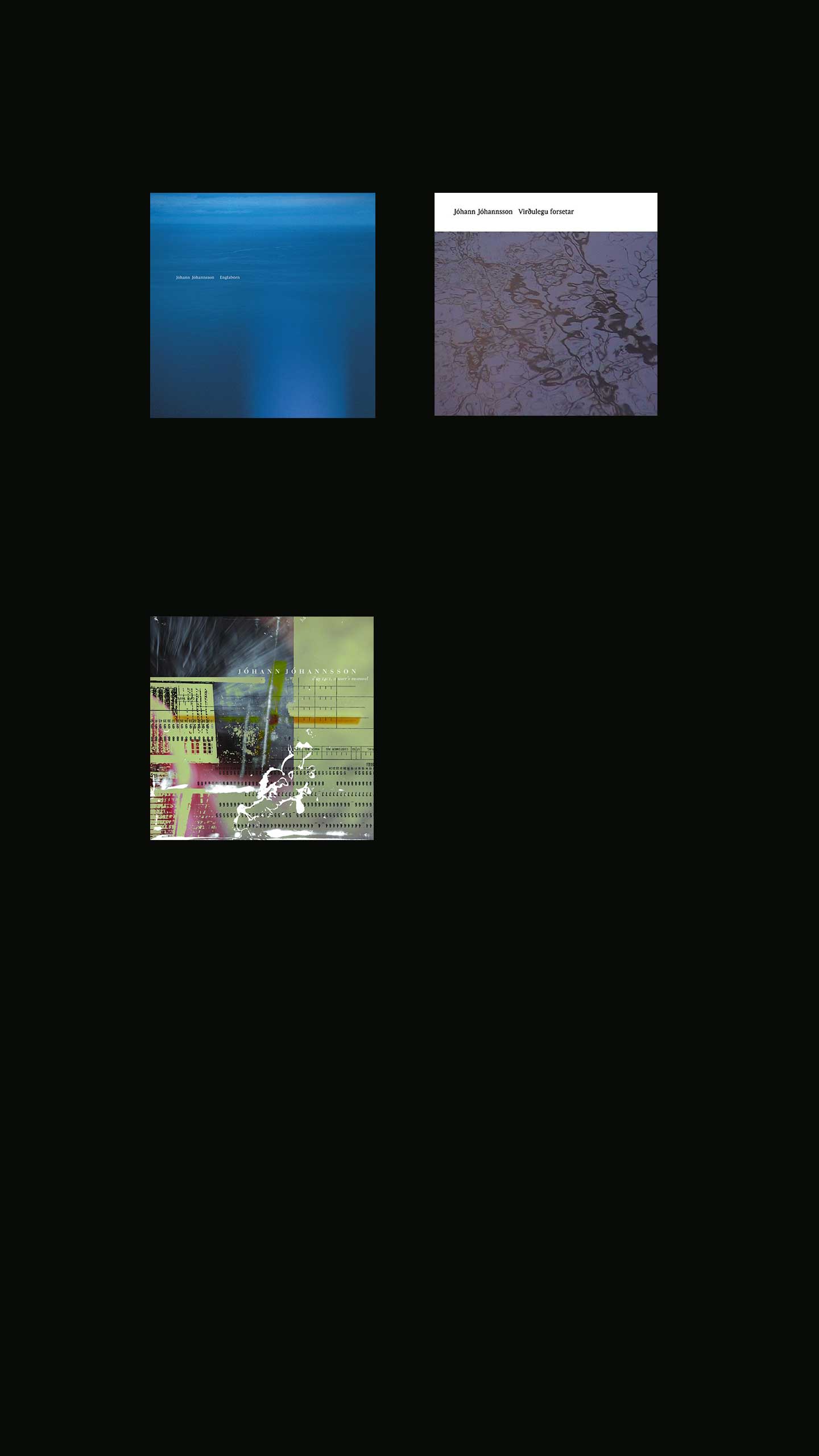 In 2002, Jóhannsson released his first solo album, Englabörn, stemming from his music for Havar Sigurjónsson’s Icelandic theatre piece of the same title (meaning ‘angels’), which he described in a 2017 Vice interview as ‘a dark, very disturbing play about domestic violence.’