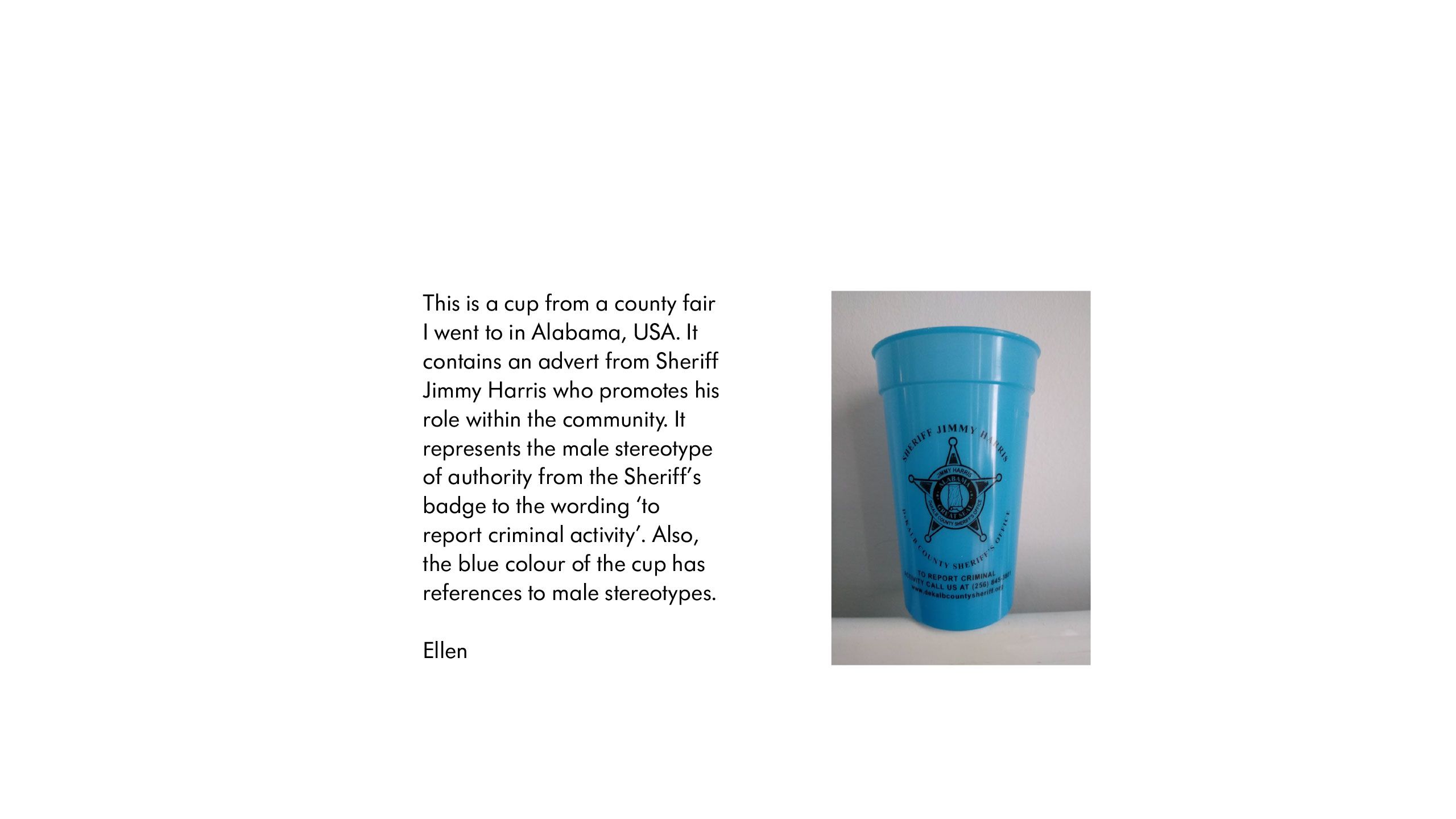In this exercise participants photographed or drew an object of meaning that represents an element of ‘masculinity’ in their life, with some including text to explain why the image resonates so much with them.